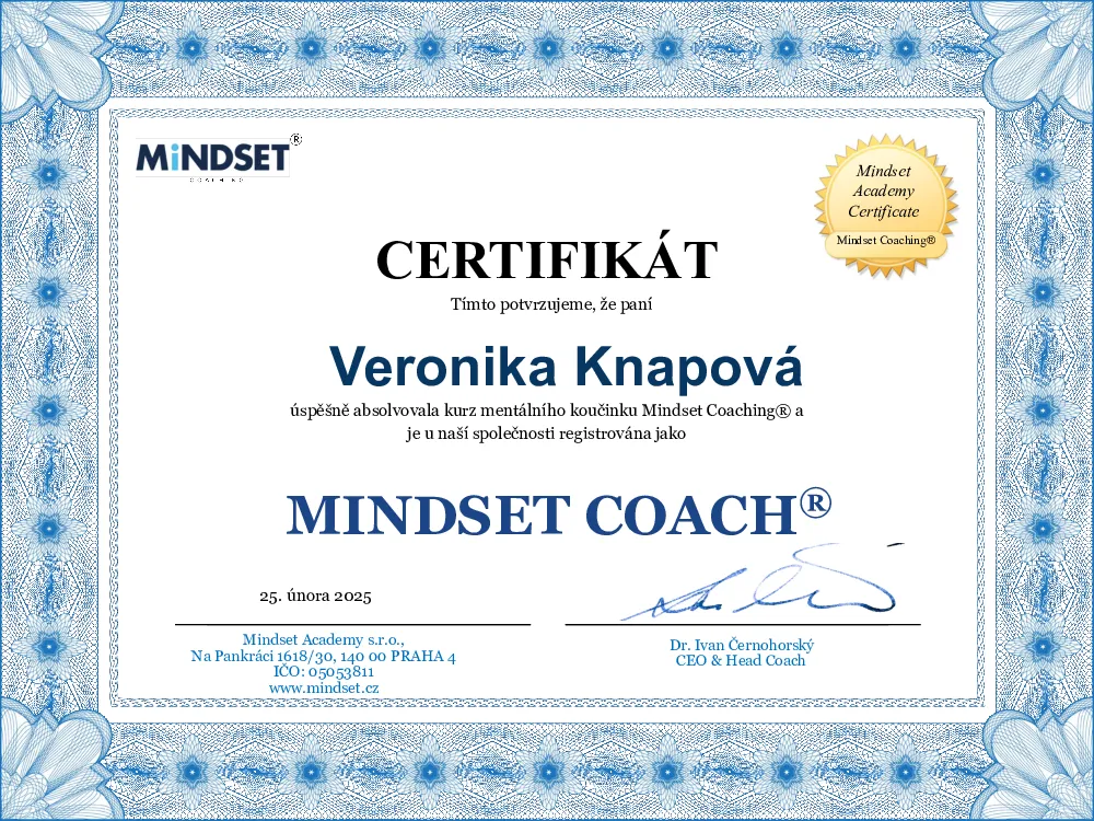 Vítej! Jmenuji se Veronika Knapová a sport mě provází celý život. Více než 12 let jsem se věnovala atletice na výkonnostní úrovni, která mě naučila disciplíně, vytrvalosti a práci s myslí. Už přes 15 let působím jako atletická a kondiční trenérka a dnes se specializuji také na mentální koučink dětí, mládeže a sportovců. Pomáhám jim posilovat psychickou odolnost, sebevědomí a radost z pohybu. Věřím, že silná mysl tvoří silného sportovce, a že sport může být cestou k sebevědomému a vyrovnanému životu.